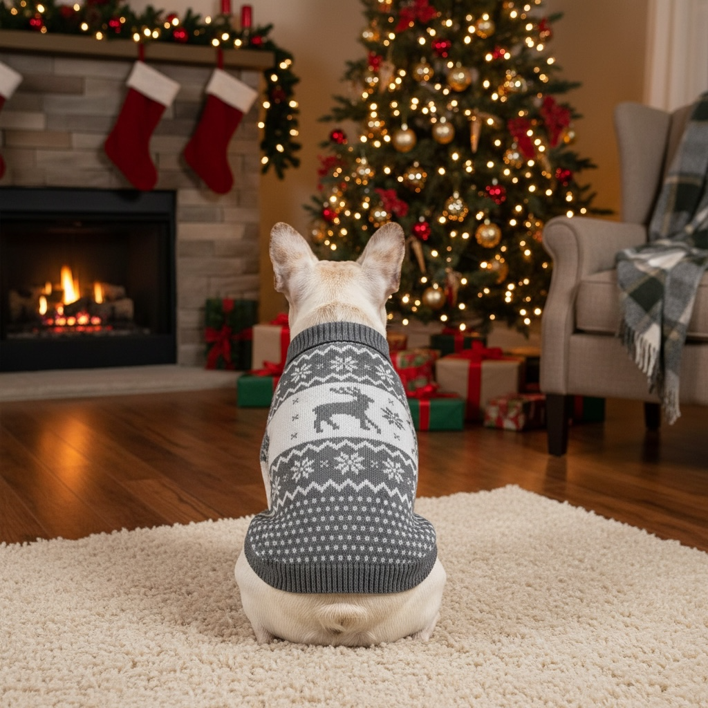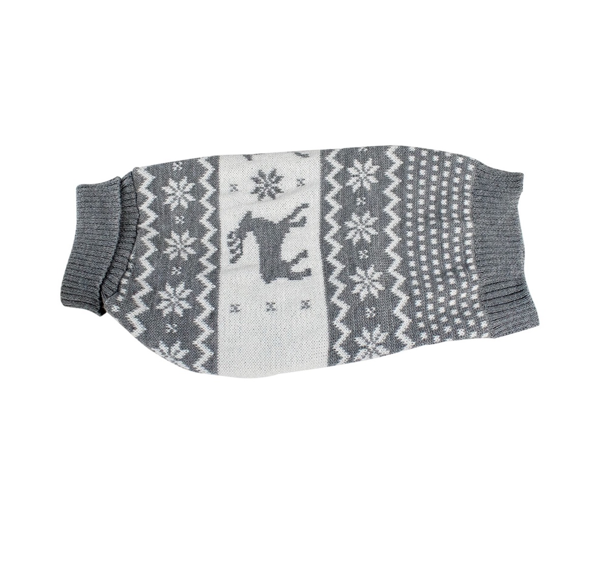 Френски сив коледен пуловер за куче с бели еленчета – различни размери